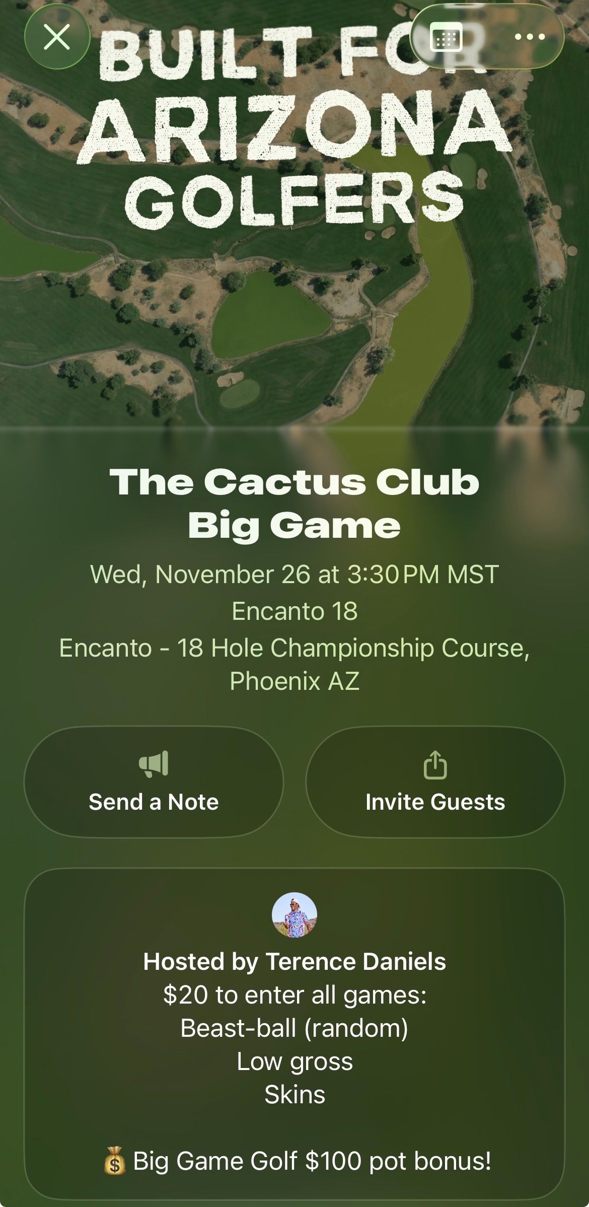 Four groups. Nine holes. Skins, side bets, and cold cash. Join us at Encanto 18 for our November Big Game. Spots are limited. (register)