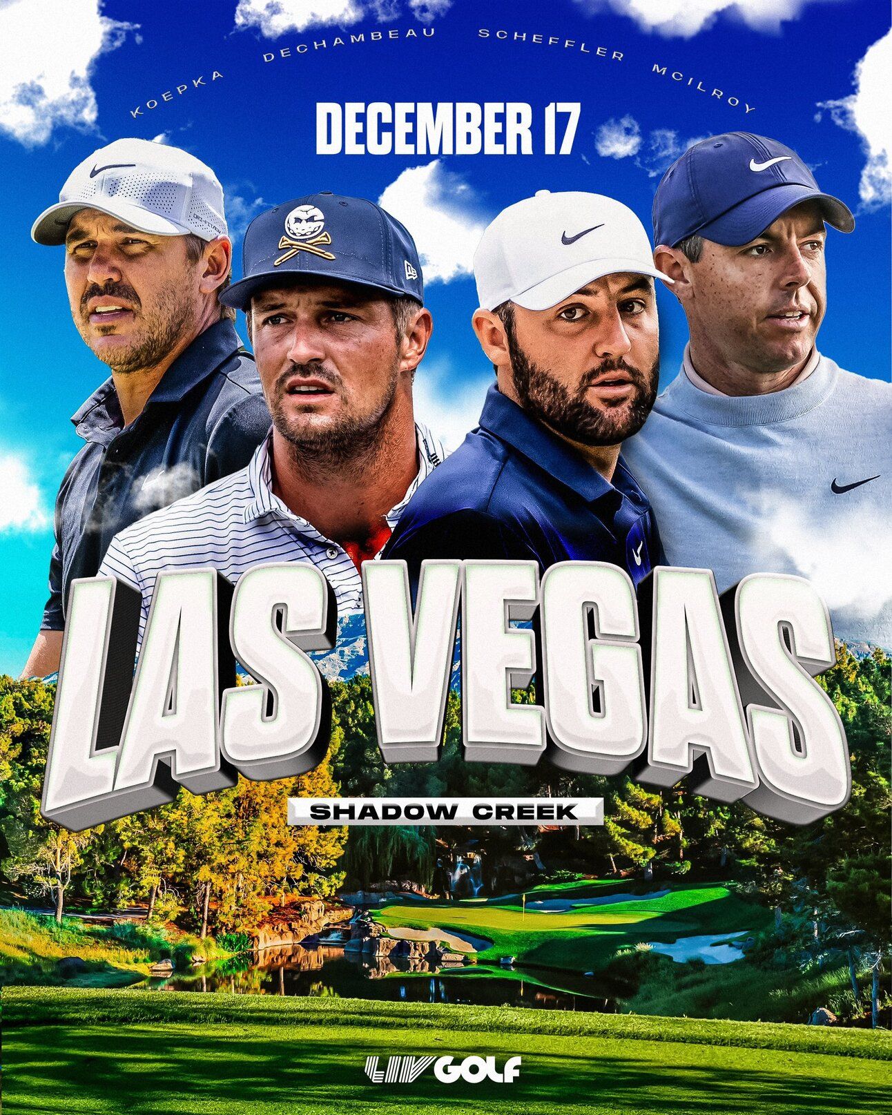 The Showdown is an 18-hole match between PGA Tour loyalists Rory McIlroy, Scottie Scheffler, LIVers Bryson DeChambeau, and Brooks Koepka. It will air on Tuesday, December 17th. This locks the made-for-TV event into an early-week schedule slot right before the holiday break. A six-year deal has been signed, with future events rotating globally. (more)