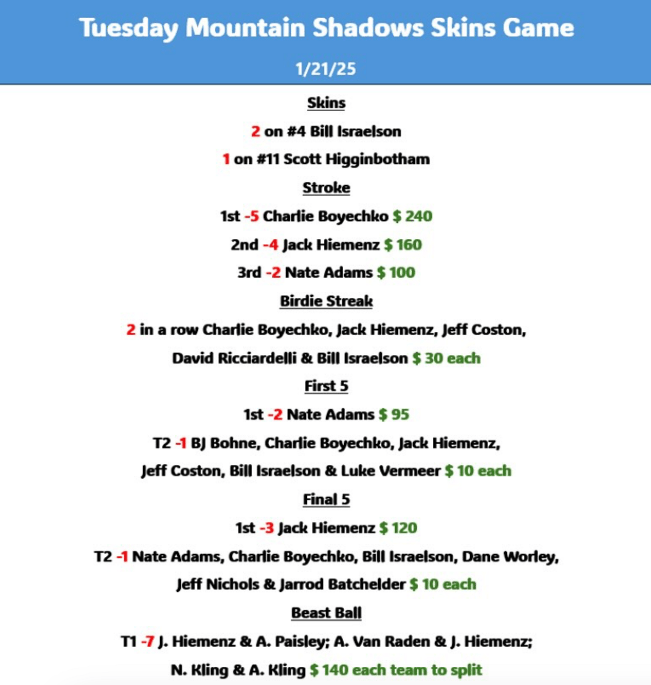 The AZ Skins Game offers weekly action on Tuesdays at Mountain Shadows and Wednesday nights at Grass Clippings. Last week, I shared What I really think about Grass Clippings.